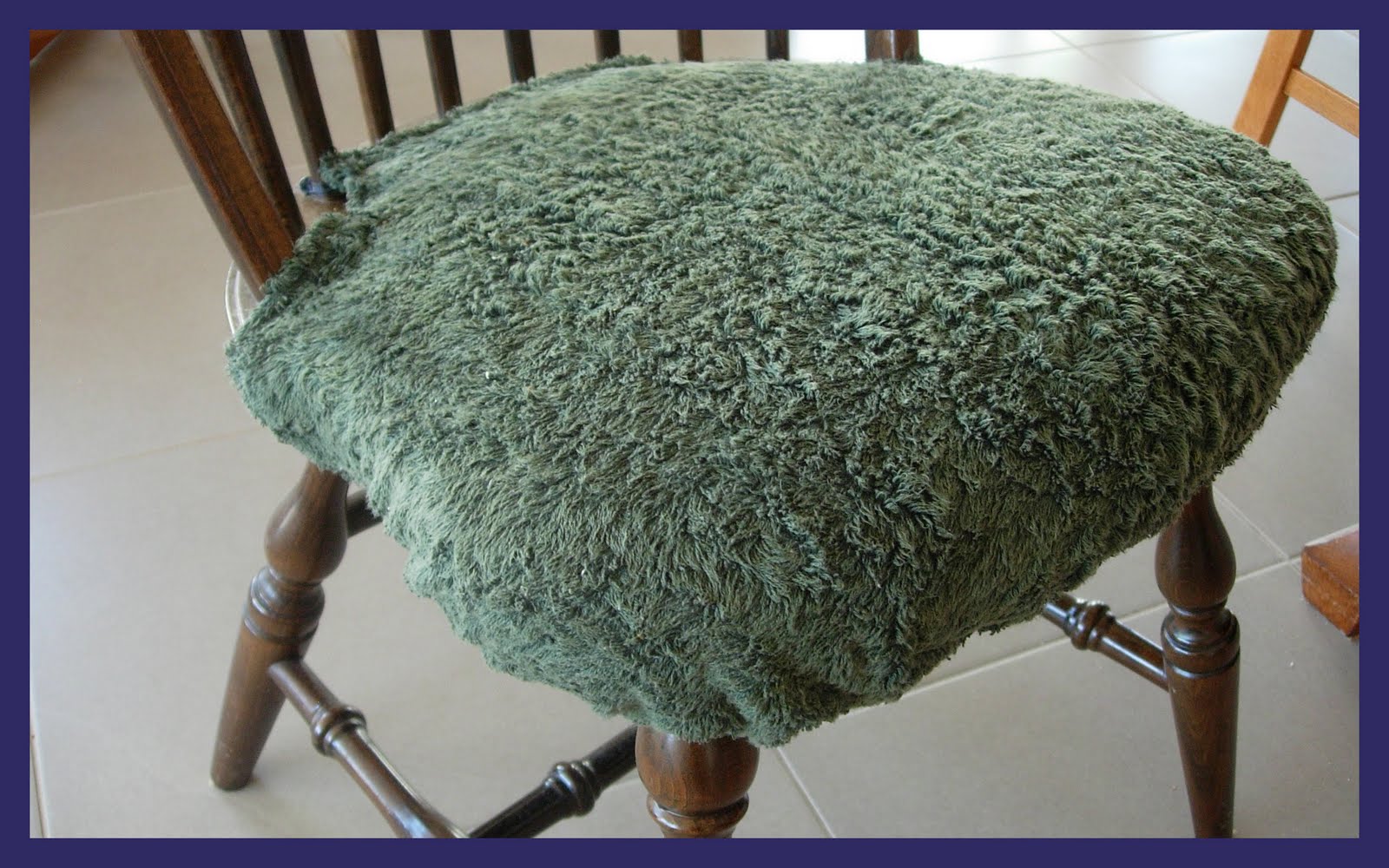 So one old bath towel, a couple of lengths of elastic, some little bits of ribbon and press studs to clip around the chair backs, and I finished up with 2 chair covers that are still easy to throw in the wash when needed.